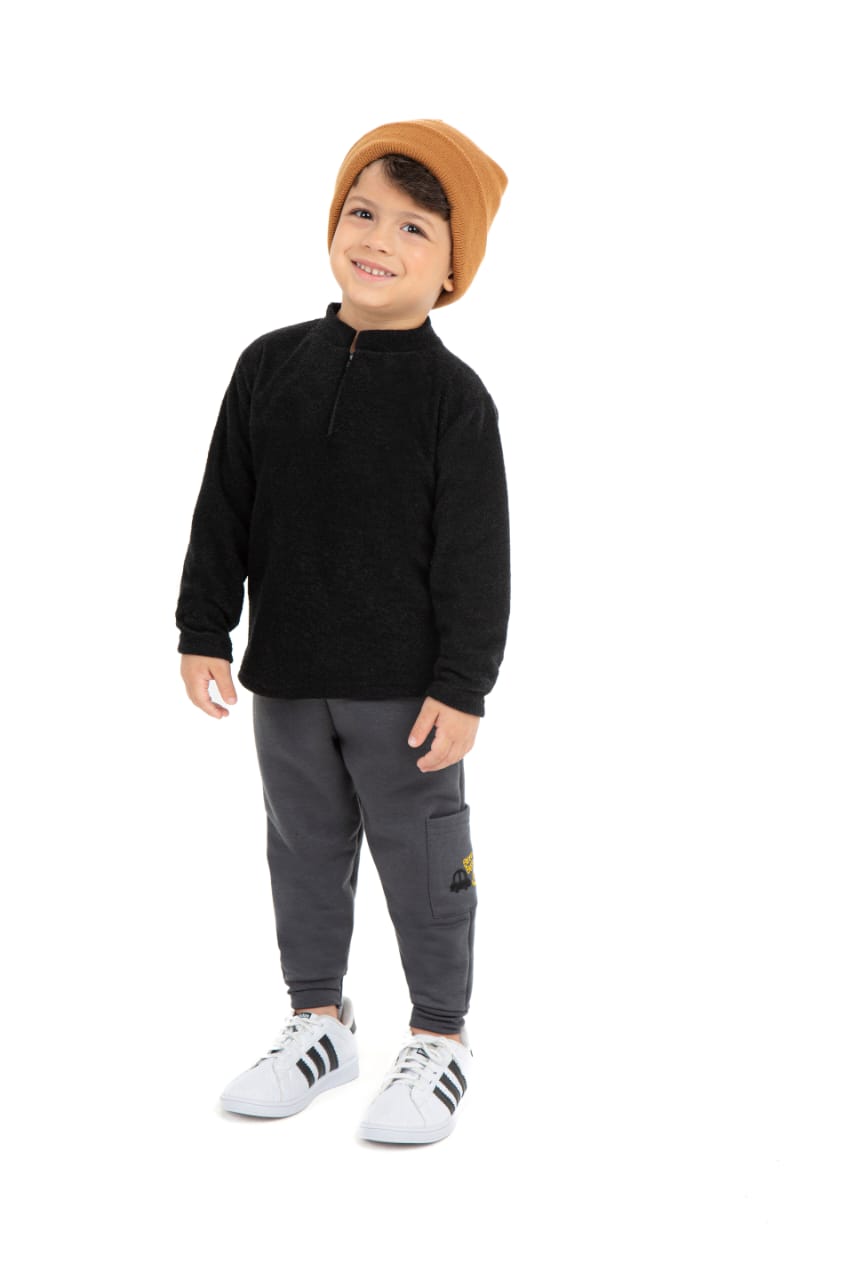 Esse conjunto é perfeito para os dias mais frios. Casaco em soft e calça em moletom.